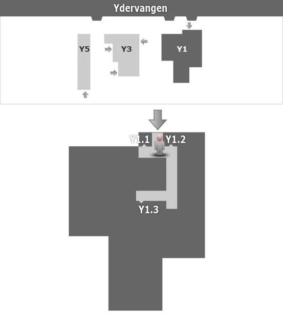 Ved personlig henvendelse følges anvisningerne på skiltene i receptionsområdet.
